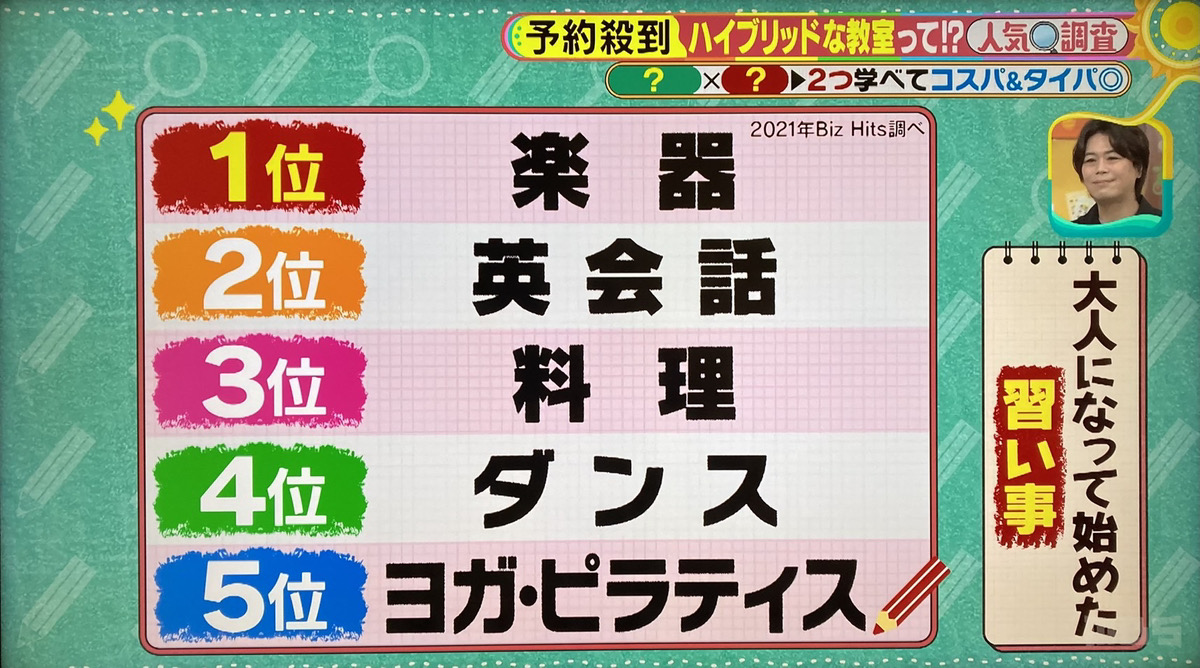 毎日放送「サタプラ」内で大人になってから始めた習い事に関する調査データを紹介いただきました。>>実際の調査結果はこちら